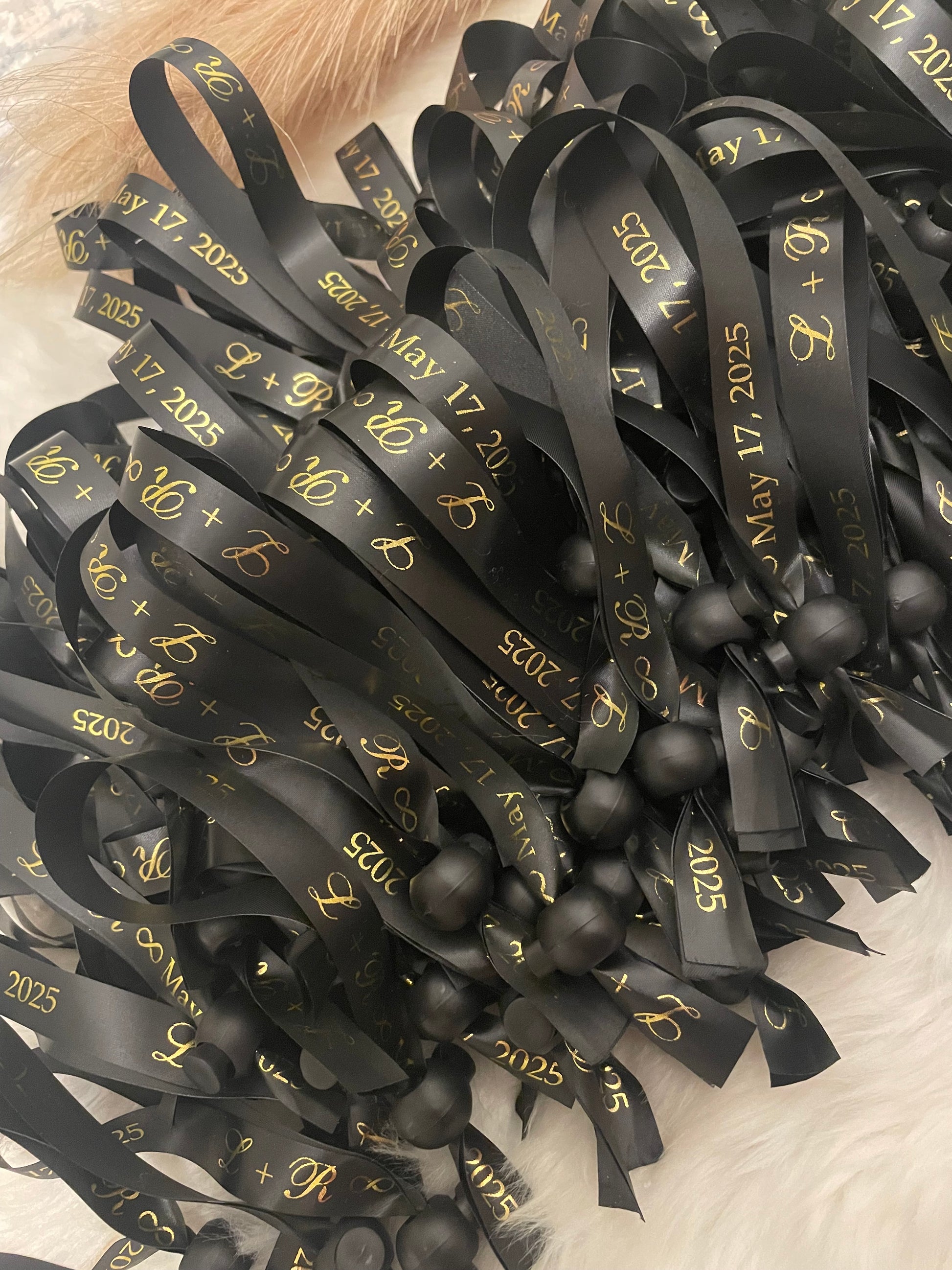 ** This custom satin ribbon is printed with the highest quality foil, however, it is not washable and it is intended for decorative use only. **